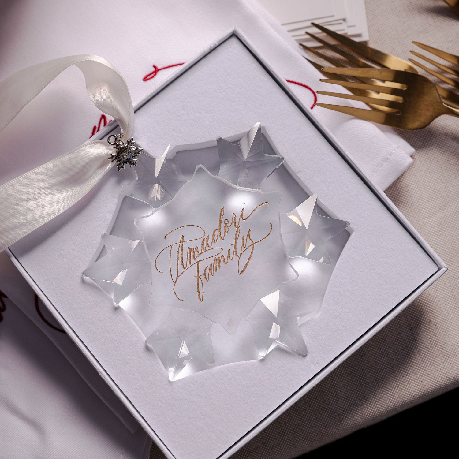My most requested style calligraphy is now exclusively hand engraved on the worlds most beautiful, personalised ornaments.