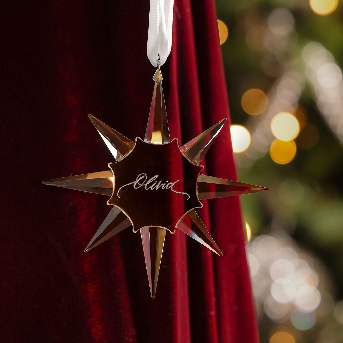 Start your very own family Christmas tradition. A custom personalised Star Heirloom Christmas decoration is an exclusive design, hand engraved heirloom ornament by the artist Jo Eleanor of Calligraphy en Vogue in her signature modern calligraphy with your choice of wording.