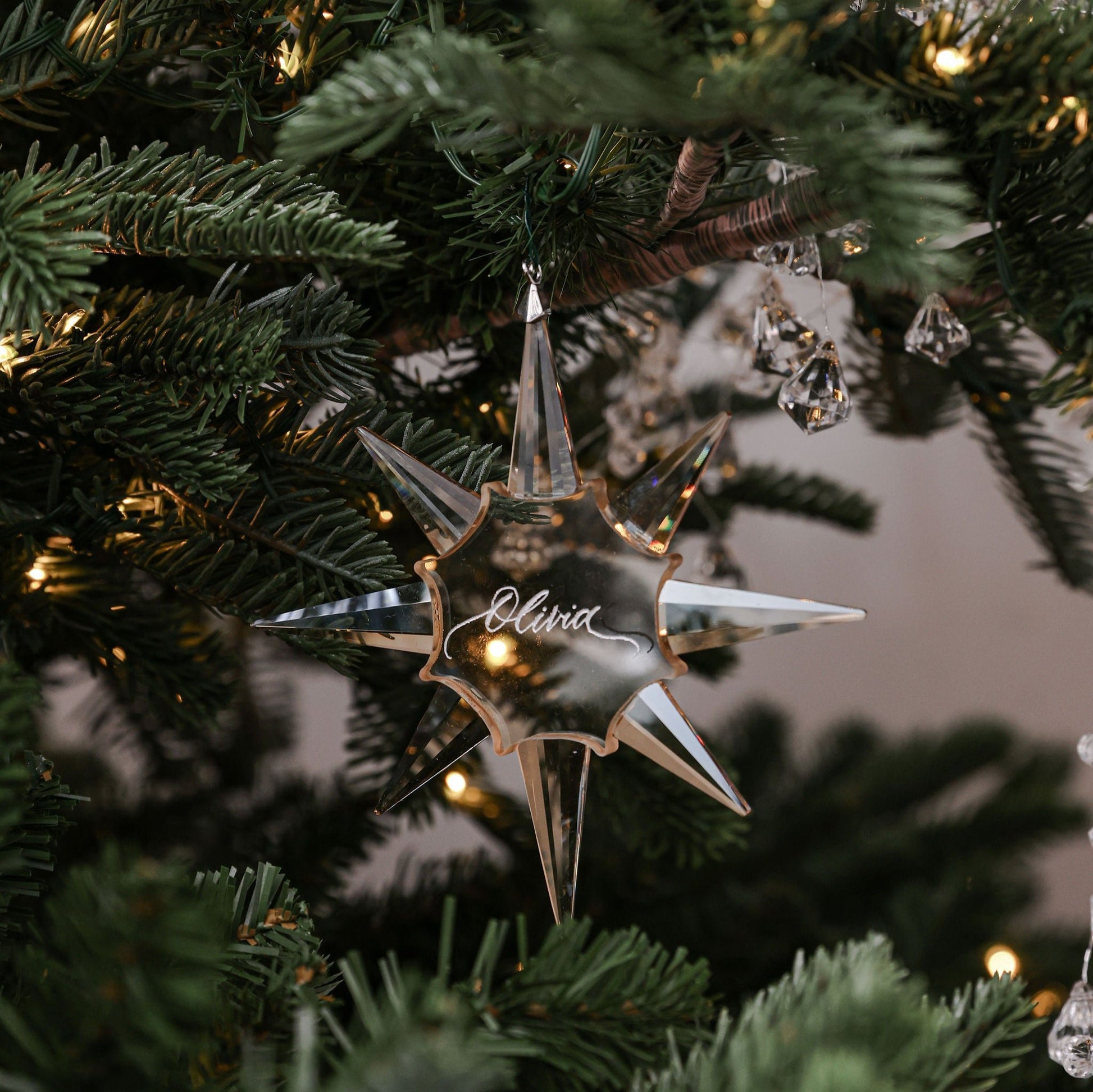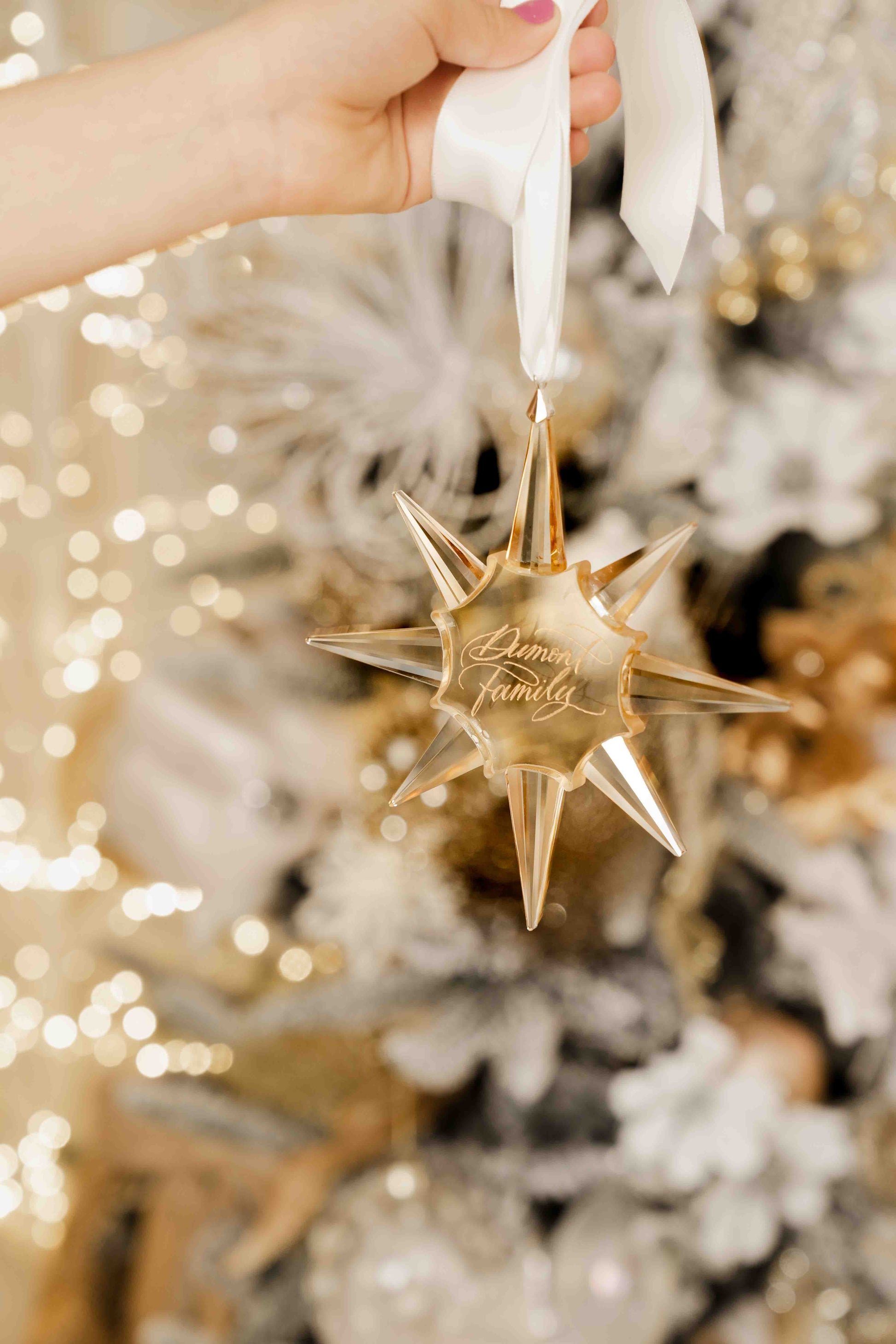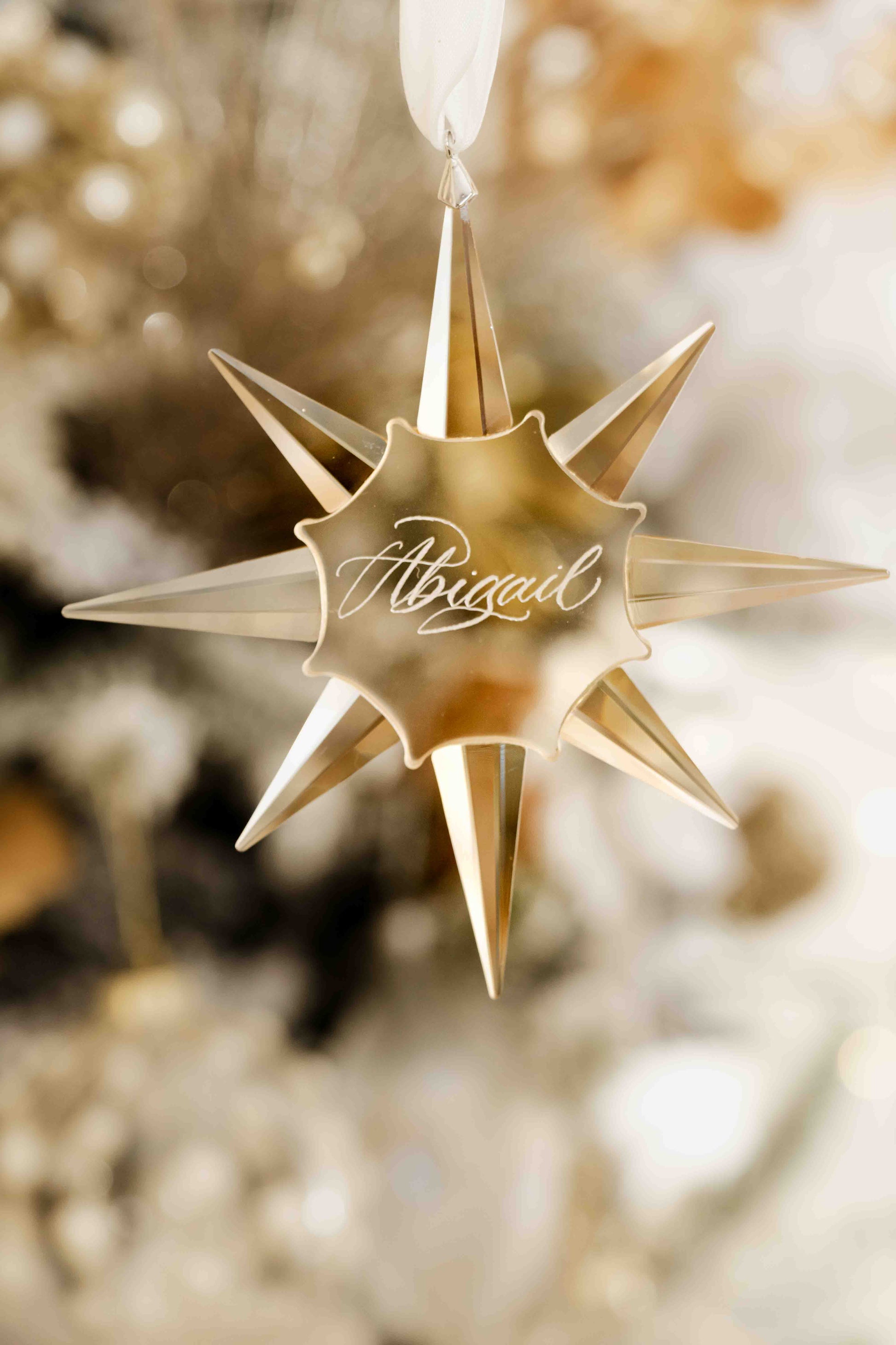 Start your very own family Christmas tradition. A custom personalised Star Heirloom Christmas decoration is an exclusive design, hand engraved heirloom ornament by the artist Jo Eleanor of Calligraphy en Vogue in her signature modern calligraphy with your choice of wording.