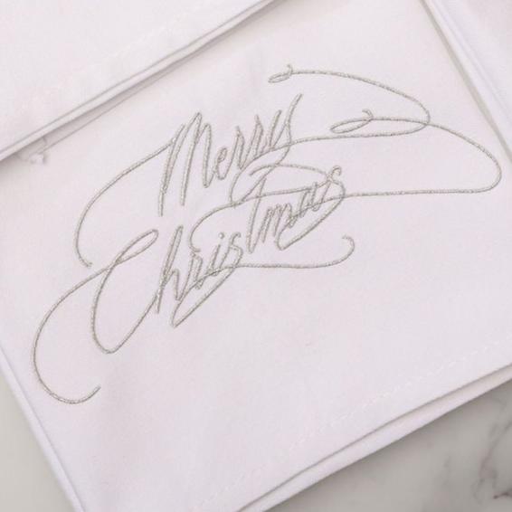 Christmas table celebrations are complete with a set of 4 luxurious calligraphy embroidered napkins “Merry Christmas” in signature hand written calligraphy by Jo Eleanor of Calligraphy en Vogue.