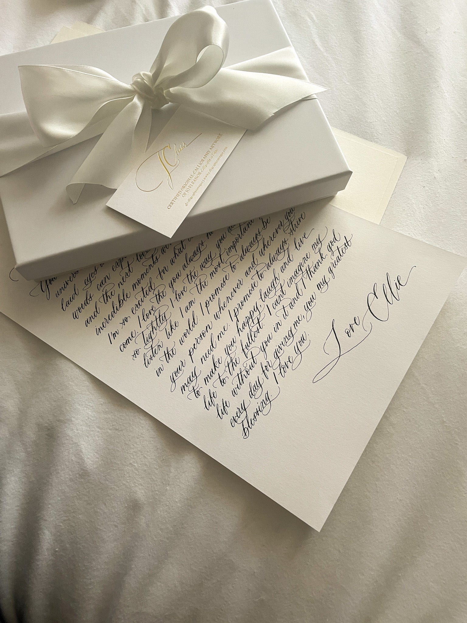 Words that last a lifetime. Capture those precious sentiments for the ones you love most and immortalise your precious thoughts in an artwork they'll never forget. The perfect love letter, wedding vows, parents letter or anniversary gift. The ultimate gift of love.
